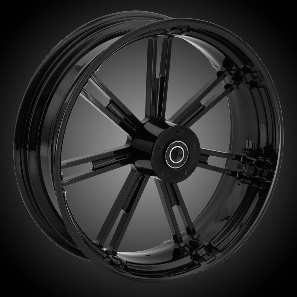 These wheels started with a T6 6061 aluminum wheel blank, CNC machined, polished to perfection then powdercoated to a smooth black finish.